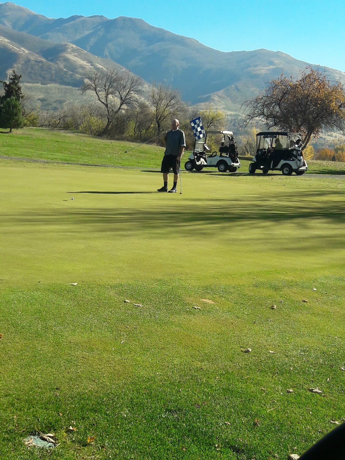 Saturday morning, Randy and I met his cousin, his cousin's girlfriend, and his cousin's friend at the golf course. I have not golfed for like two years! I was a weeee bit nervous. We had the best time! The guys were so patient with my lack of all-star worthiness! We played a solid 18 holes and had the best time! I only lost two balls. Randy's cousin switched up my grip on the clubs and I was able to hit with lots more power. It was the most beautiful day, too! The colors were amazing, the temperature was perfect, we had some music going in our cart, and the company was the best!